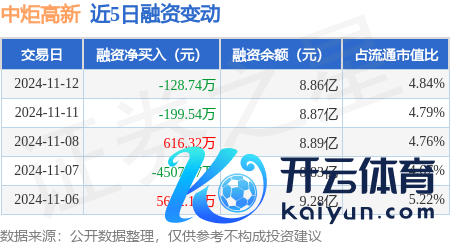 本站讯息开云体育,11月12日,中炬高新(600872)融资买入4577.44万元,融资偿还4706.18万元,融资净卖出128.74万元,融资余额8.86亿元,近20个往改日中有11个往改日出现融资净买入。