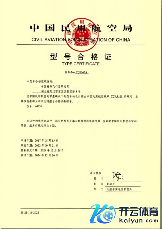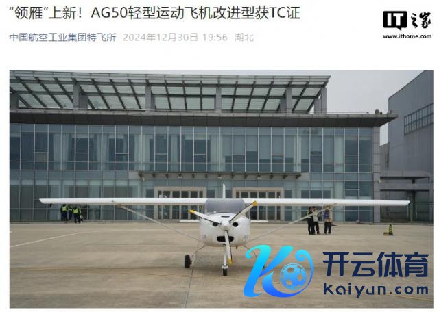 IT 之家 1 月 2 日音书云开体育,中国航空工业集团特飞所 12 月 30 日秘书,由中航工业特飞所自主研制的"领雁" AG50 轻型通晓飞机矫正型奏凯获取由中国民航局颁发的型号及格证(编号:0067A)。